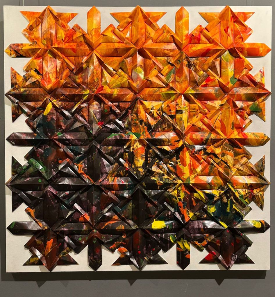 Aquesta obra, amb la seva estructura emergent de talls i plecs de paper, és una exploració profunda de l’inconscient col·lectiu. Com un riu mare, flueix i es ramifica, simbolitzant la complexitat i la interconnexió de les nostres emocions i pensaments compartits. En aquest tsunami oceànic de sentiments, la peça ens convida a trobar el nostre centre, el lloc on naixem i on resideix la nostra base energètica emocional. És un viatge cap al nucli de la nostra essència, on es troben la serenitat i l’equilibri enmig del caos.