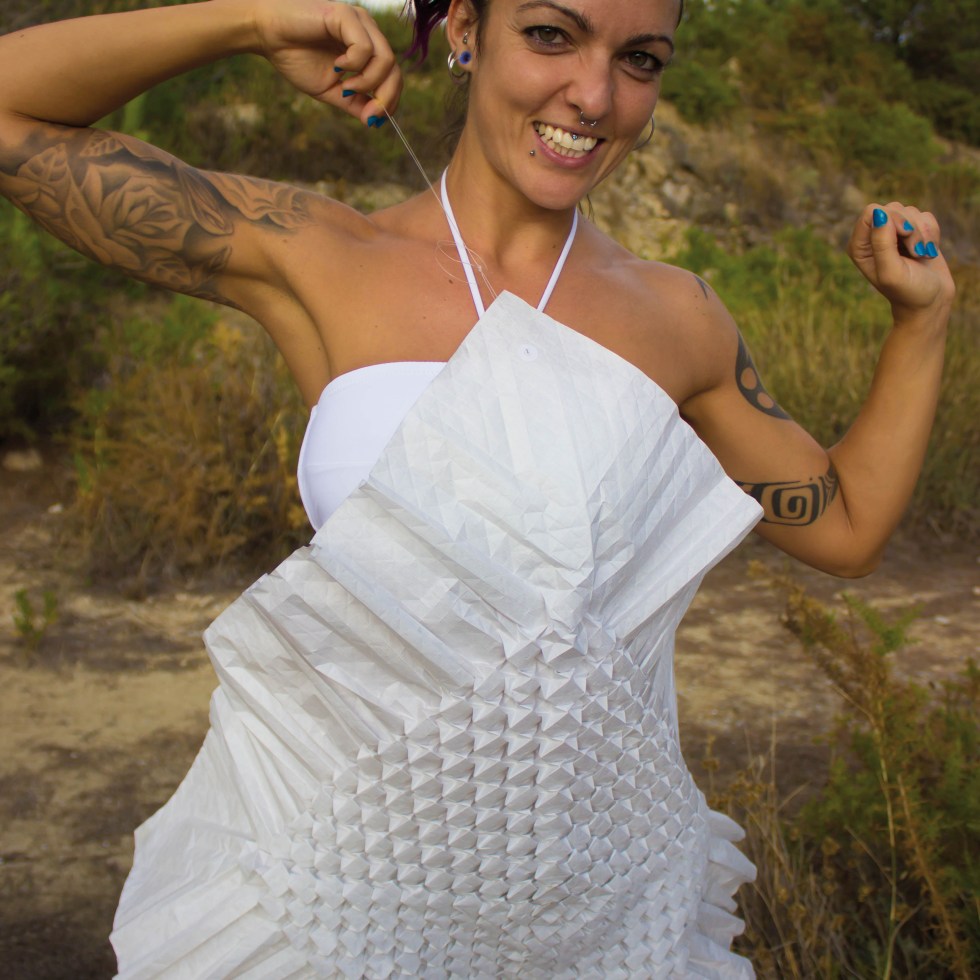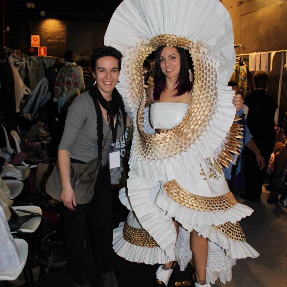 It carries an artistic background that ranges from hyperrealism (a study of reality through drawing) with hyper-realistic portraits painted with oil painting, portraits with airbrushing over a suit support paper teabags, until at early 2014 began to explore the possibilities of language that paper making folds does. Hence mandalas become large, clothing and paper dresses and sometimes marine sculptures, sometimes dreamy, sometimes futuristic, with oscillations of a Rococo air.