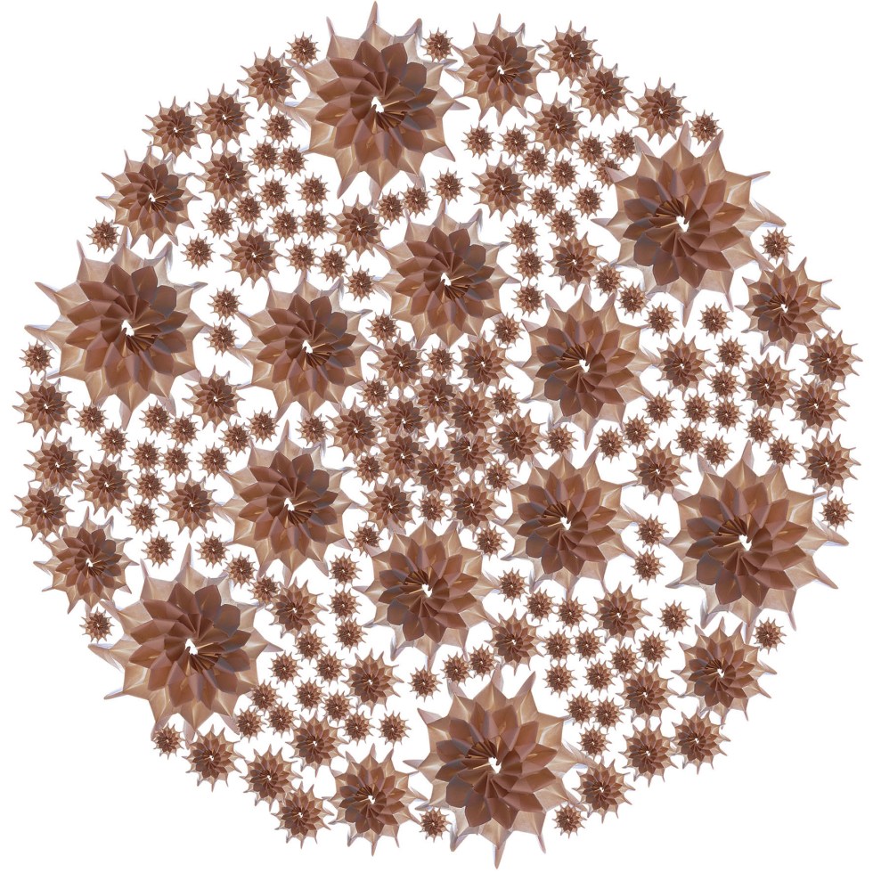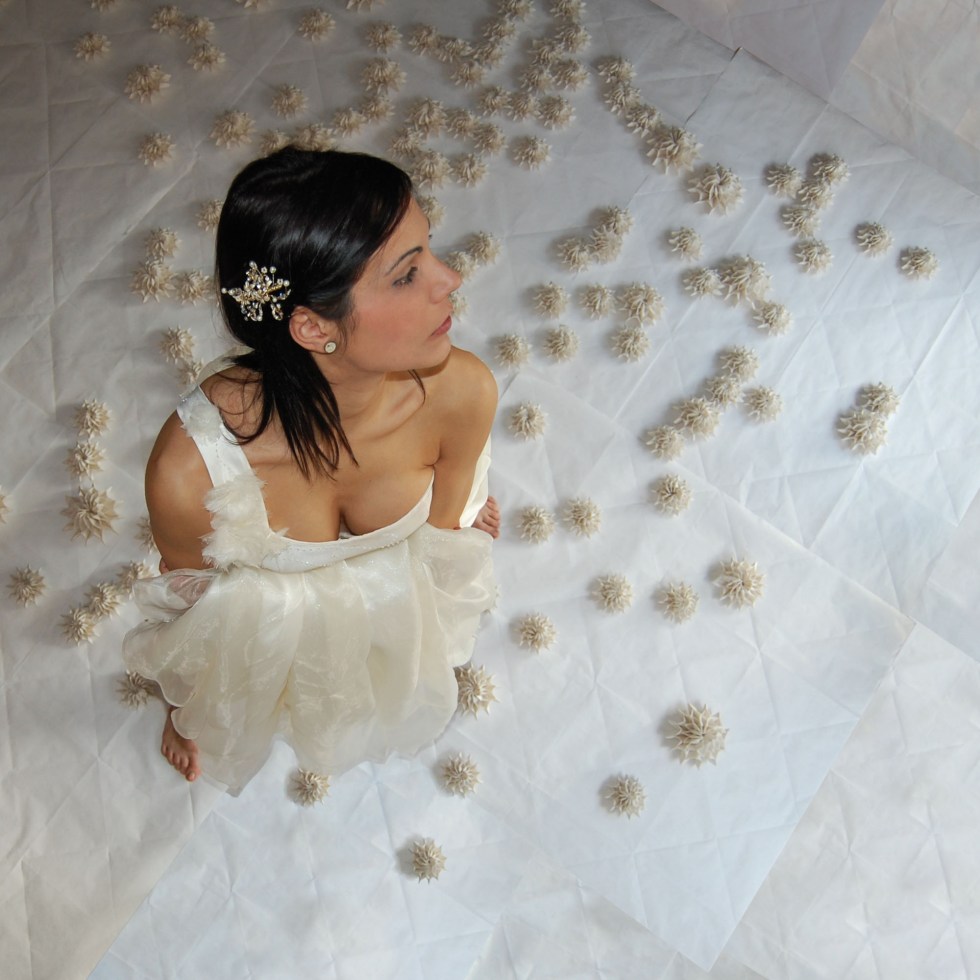 It carries an artistic background that ranges from hyperrealism (a study of reality through drawing) with hyper-realistic portraits painted with oil painting, portraits with airbrushing over a suit support paper teabags, until at early 2014 began to explore the possibilities of language that paper making folds does. Hence mandalas become large, clothing and paper dresses and sometimes marine sculptures, sometimes dreamy, sometimes futuristic, with oscillations of a Rococo air.